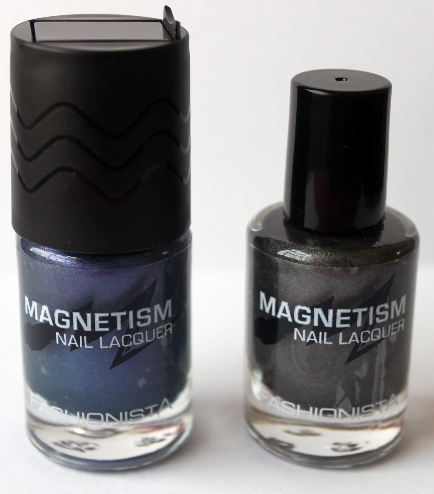 I got two of the colours Forever is Blue and Notorious Silver. They come with a separate magnet which fits nicely on top of the nail polishes as above.