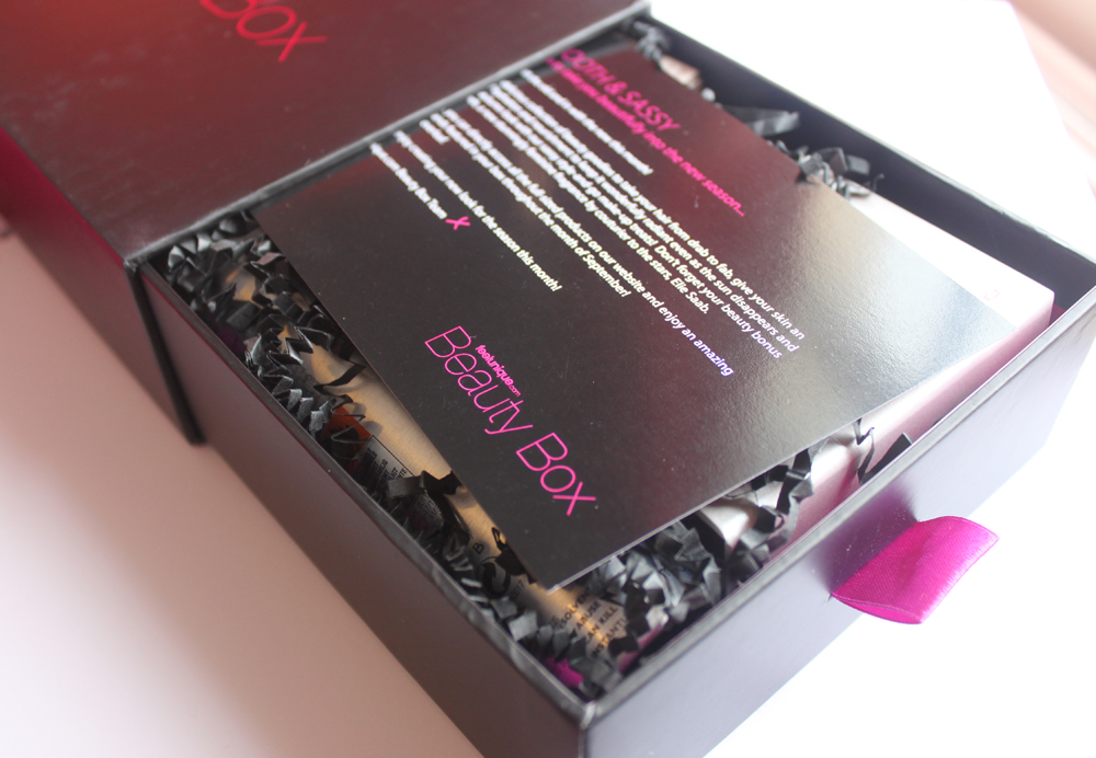 The theme of this box was Smooth & Sassy and the products are suppose to be 5 steps to make you beautiful in the new season. They also offer 10% off all brands featured in the beauty box on the feelunique.com website which I think is great especially as you can reorder all the products of one website.