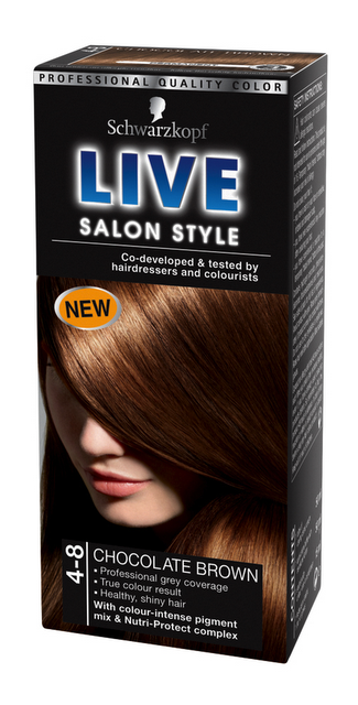 Louise’s colour is Chocolate Brown which is quite warm, it has really brought back the shine. She used the new LIVE Salon Style by Schwarzkopf which is said to the first professional quality hair colour to be developed for home use. It promises lots of good stuff like shinny, healthy hair and to cover greys.