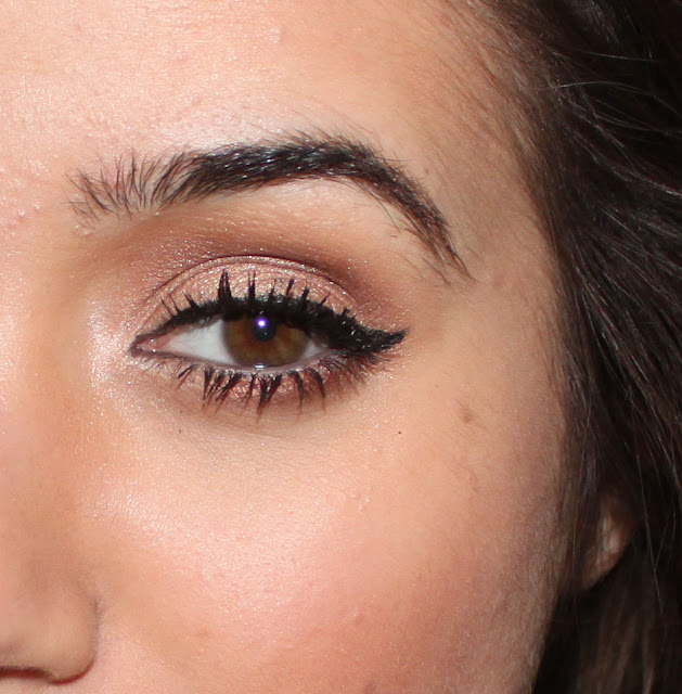 I use my usual Loreal Carbon Gloss eyeliner on top, Soap & Glory Pencil eyeliner to line the top of the inside of my eye and a pale No7 colour on my water line. After curling my lashes I used Lancome Hypnose Drama mascara.