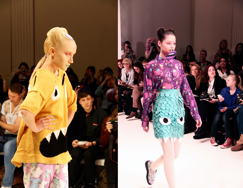 The first show was Fam Irvoll, she is from Norway but actually graduated from Central Saint Martins, the show was amazing and really different to most shows you would see at LFW. It was playful and colour as was the makeup, I did doubt that The Body Shop had such bright colours and was right. The brighter colours were actually paints although some of the blues were from TBS range.