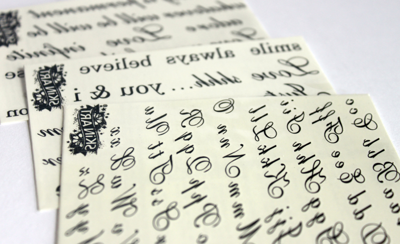 In Your Own Words has a mixture of quotes and letters in very pretty writing. This kit actually has my favourite tattoo which is the one that reads ‘Nothing is permanent’ but also has celebrity inspired quotes such as ‘Shhh….’ There is a sheet with all the letters on which I don’t think you will ever get full wear of.