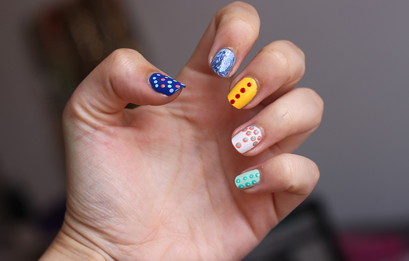 All the colours (apart from the yellow) are Bourjois and the glitter colour is actually the new Laser Toppings also by Bourjois. Once you have a base coat they are all super easy to do and very effective, clearly I am not a pro so they aren’t perfect but you get the idea.