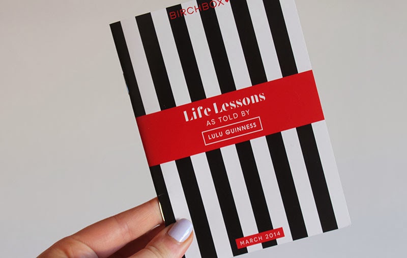 I got my first box this month with the Lulu Guinness theme too! For my first box I was quite impressed. If you want to take a look at my post it's here; http://yayalicemay.blogspot.co.uk/2014/03/birch-box.html