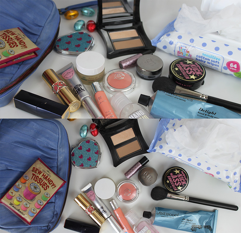 When filling it up again keep asking yourself if you really need it in your handbag and if you truly use it on the go- if not leave it at home, you can always come back to it at a later date. Don’t forget you can also buy mini’s and transfer products into smaller containers such as perfumes and foundations.