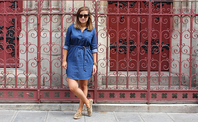 I really love denim dresses. This one is especially cute! And I like the leopard print flats you paired with it. Great outfit!